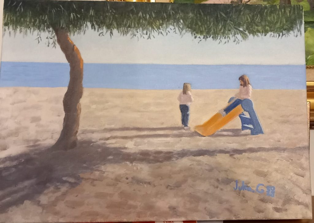 Este cuadro esta basado en la fotografía que me hicieron mis padres mientras jugabamos en la playa.